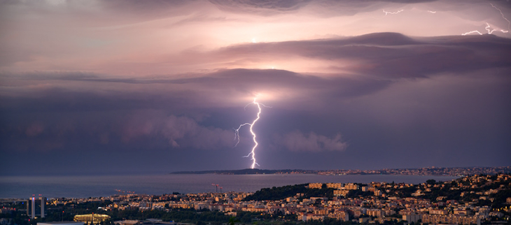 Sur les régions méditerranéennes, les orages ont été très actifs cette nuit, générant une forte activité électrique (plus de 9000 impacts de foudre sur la région Provence-Alpes-Côte d’Azur), avec de fortes pluies. Sur certaines stations comme à Fréjus et Mandelieu-la-Napoule, on a relevé plus de 140 mm en 24h, soit plus d’un mois de pluie. De forts orages ont également eu lieu à Marseille avec 71 mm sur la journée.