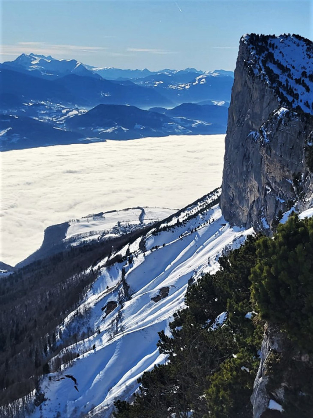 Un enneigement continue au-dessus de la mer des nuages vu des hauteurs de la Chartreuse. © Sébastien Escande