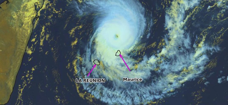 Après avoir atteint temporairement le stade de cyclone tropical très intense ce week-end (la catégorie des cyclones les plus violents pour l’Océan Indien), il se maintient ce lundi au stade de cyclone tropical intense. Situé à 13h locales (10h heure de Paris) à 330 km au nord-est de la Réunion et à environ 150 km au nord-nord-est de l’île Maurice, il engendre des rafales maximales sur mer estimées à 285 km/h.