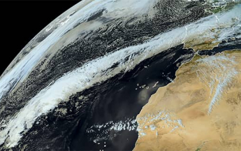 La planète Terre est entourée de plusieurs couches gazeuses qui constituent l'atmosphère. L'essentiel des phénomènes météo se produisent dans la plus basse et la plus chaude, la troposphère. Au-dessus, se situent la stratosphère, la mésosphère, la thermosphère. L'atmosphère protège la Terre des rayonnements du Soleil (les UV). On y trouve également des phénomènes qui influencent beaucoup la météo, comme le courant jet ou le vortex polaire.