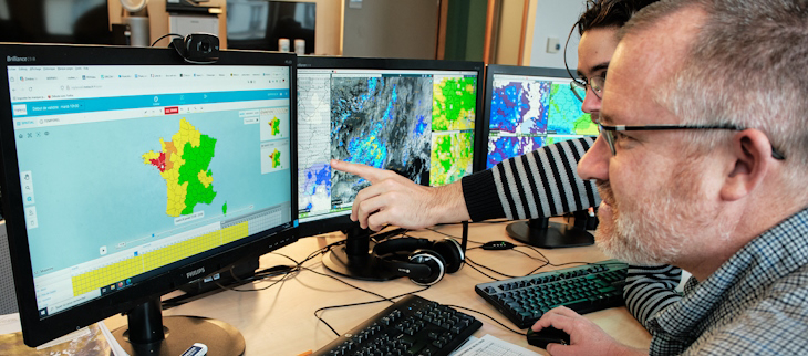 Ils rédigent aussi des bulletins de suivi de la Vigilance qui seront envoyés à tous les partenaires de la gestion de crise et de la sécurité civile, et mis à disposition du grand public sur le site internet de la Vigilance. Avec sa vision d’ensemble sur tout le territoire hexagonal, le chef prévisionniste national harmonise les propositions de couleur des chefs prévisionnistes régionaux pour produire la carte nationale et rédige un bulletin national de Vigilance.