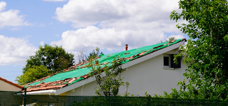 Vent Toit endommagé par le vent sous orage.